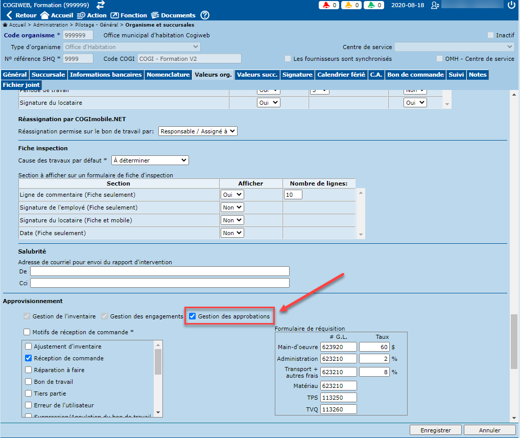 - Dans la section "Approvisionnement", cocher la case "Gestion des approbations".