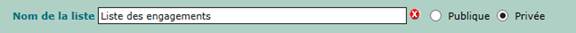 La liste des engagements permet d'imprimer ou exporter une liste des engagements, selon différents critères de sélection. Par ailleurs, des listes personnalisées d’engagements peuvent être enregistrées.