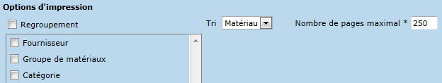 La liste des matériaux peut être imprimée en format sommaire ou détaillé.