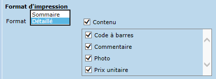 Le format détaillé permet d'afficher ou non le contenu suivant :