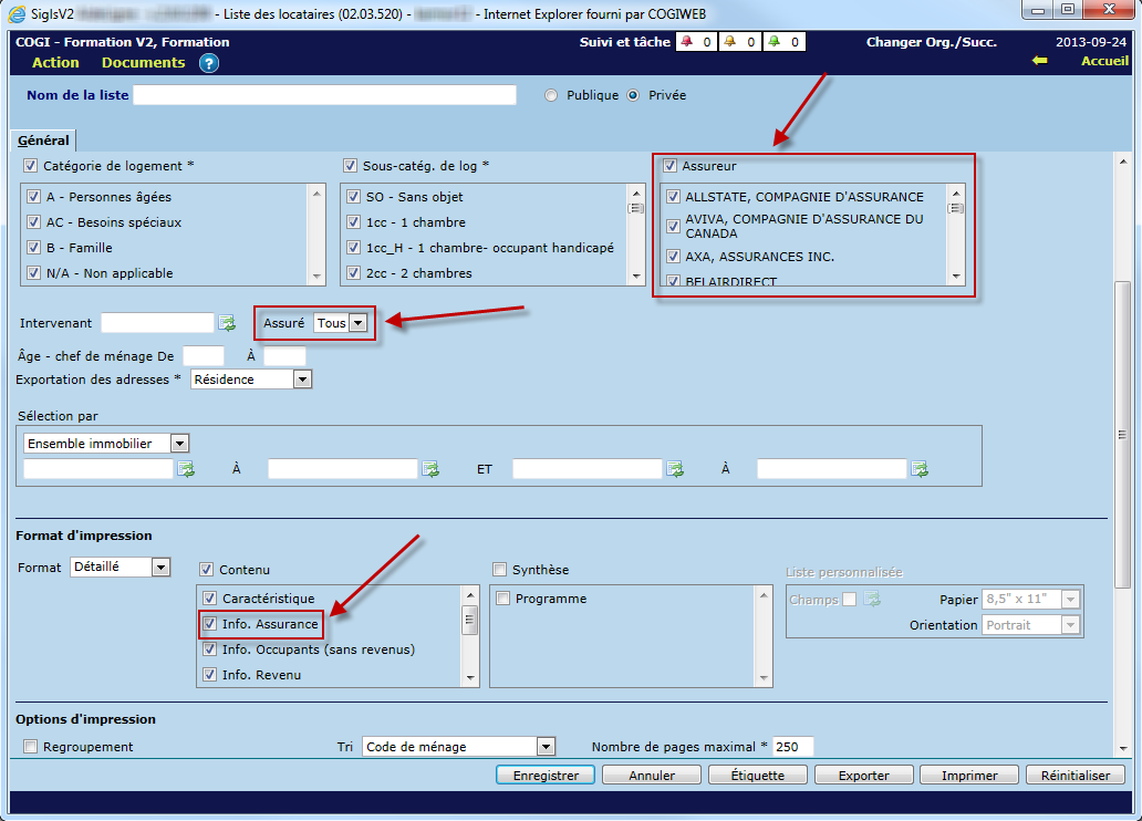 Plusieurs listes et productions ont dû être ajustées afin de répondre au besoin de l'assurance-habitation des locataires. À noter qu'un seul écran sera présenté compte tenu que les critères de sélection et l'information dans les listes sont relativement semblables.