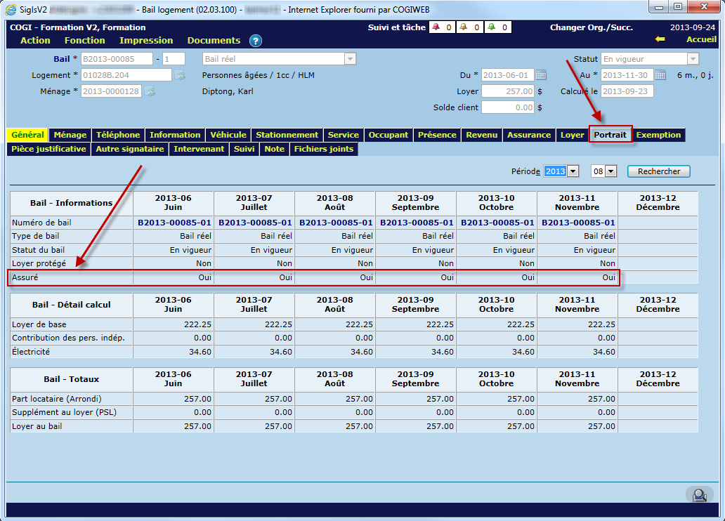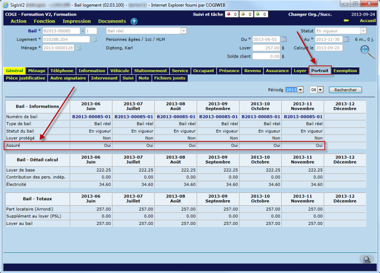 - Bail, Logement et Compte client - Sous l'onglet "Portrait".