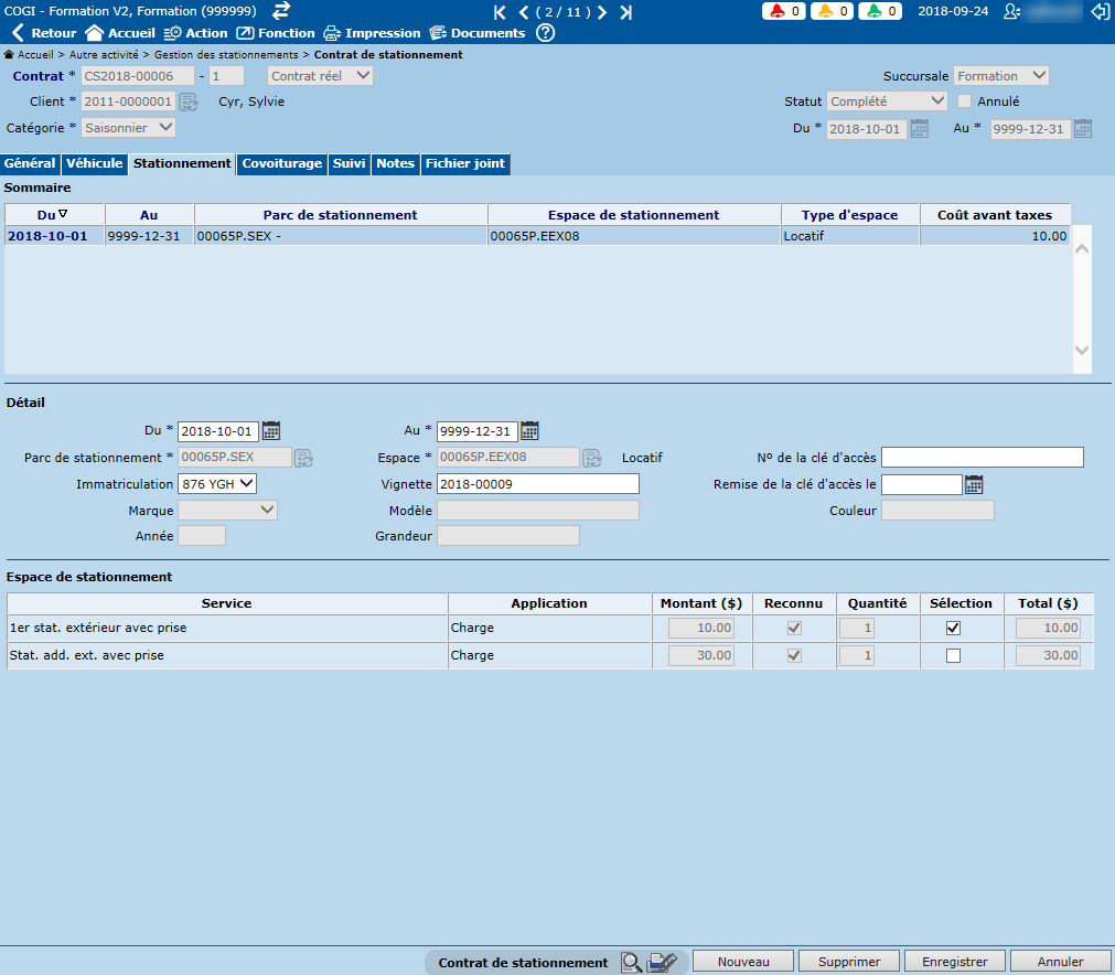 À noter qu'un contrat de stationnement peut contenir plusieurs espaces de stationnement.