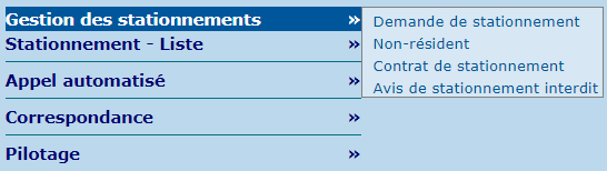 | Liste des contrats de stationnement | Permet de créer des listes publiques ou privées de contrats de stationnement, selon différents critères. |