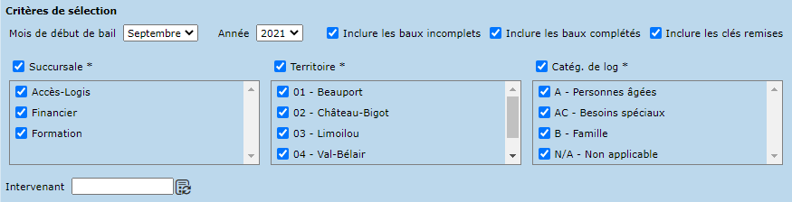 La liste de remise des clés permet d'imprimer une liste des baux pour lesquels les clés du logement ont été remises ou non au locataire, selon différents critères de sélection. Par ailleurs, des listes personnalisées de remise des clés peuvent être enregistrées.