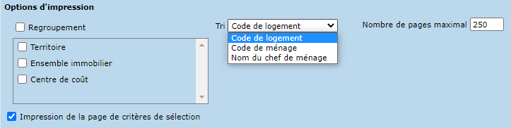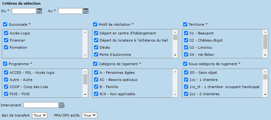 La liste des départs - Fin de facturation permet de spécifier les critères suivants :