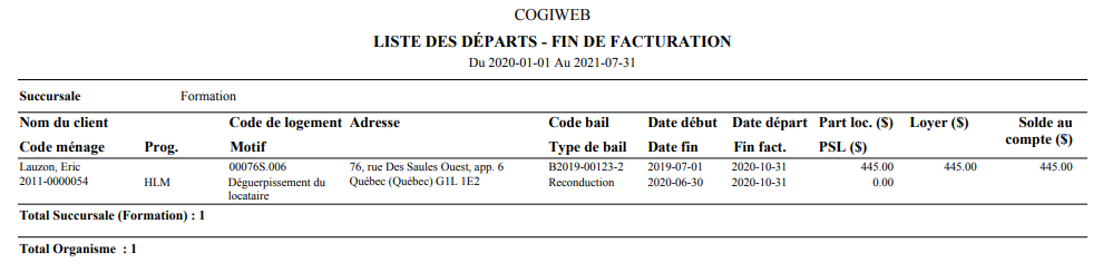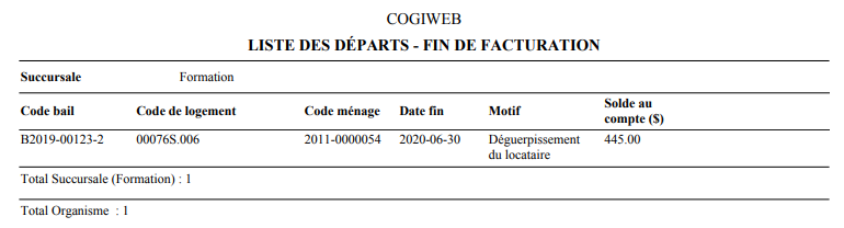 <Accueil » Bail » Listes » Départs - Fin de facturation