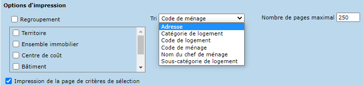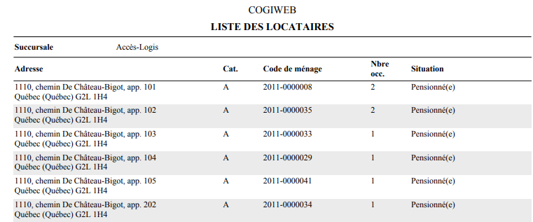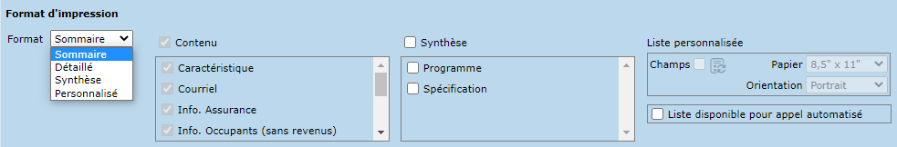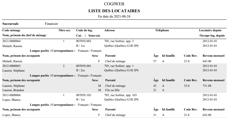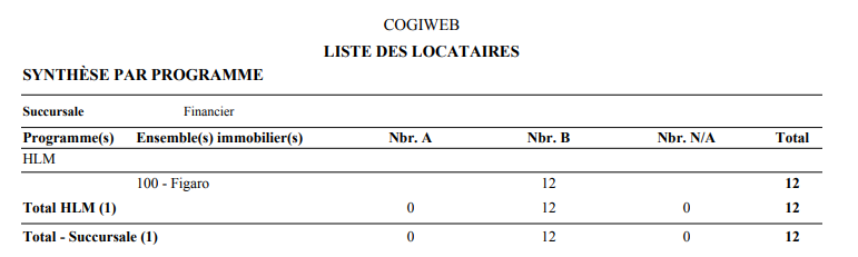 Les formats sommaire et détaillé permettent de regrouper les informations de la liste des locataires selon les critères suivants :