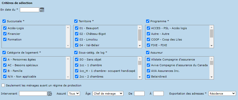 - Possibilité d'inclure seulement les ménages ayant un régime de protection