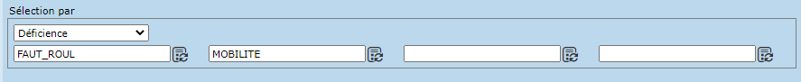 La section "Sélection par" permet de spécifier une ou plusieurs valeurs en particulier. Les catégories de valeurs disponibles sont :