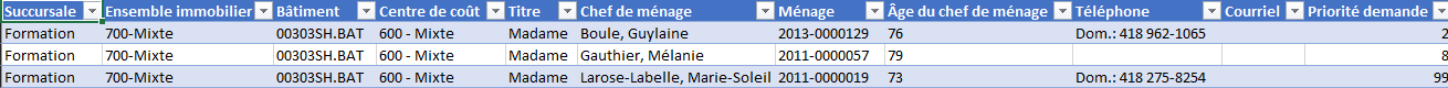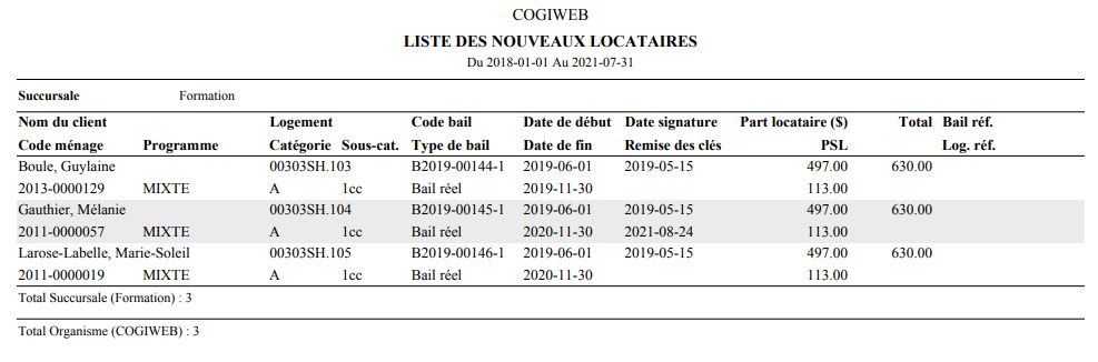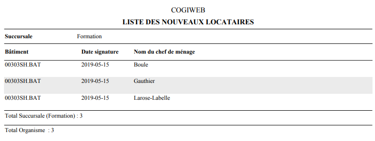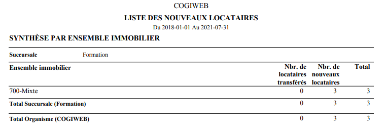 Le format sommaire permet de regrouper les informations de la liste des nouveaux locataires selon les critères suivants :