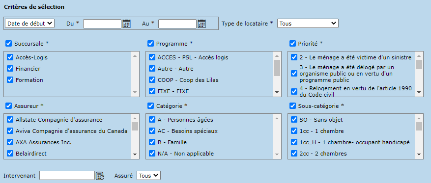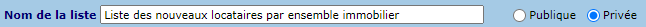 La liste des nouveaux locataires permet de spécifier les critères suivants :
