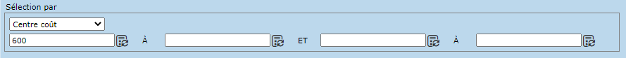 La section "Sélection par" permet de spécifier une ou plusieurs valeurs en particulier. Les catégories de valeurs disponibles sont :