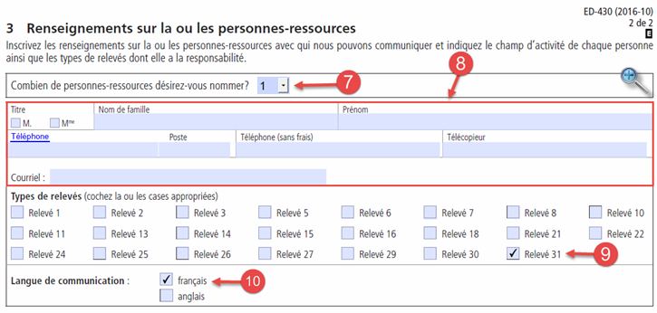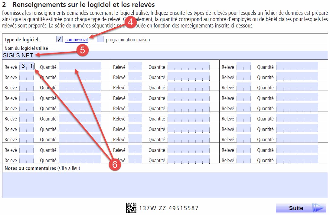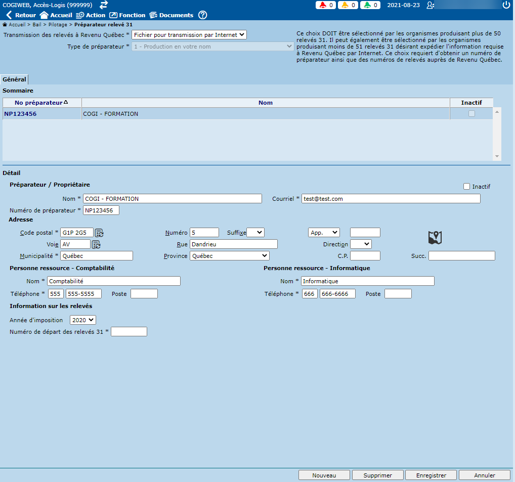 NOTE : Un numéro de préparateur ainsi qu'une série de numéros séquentiels sont obligatoires pour la transmission de relevés 31 par Internet.
