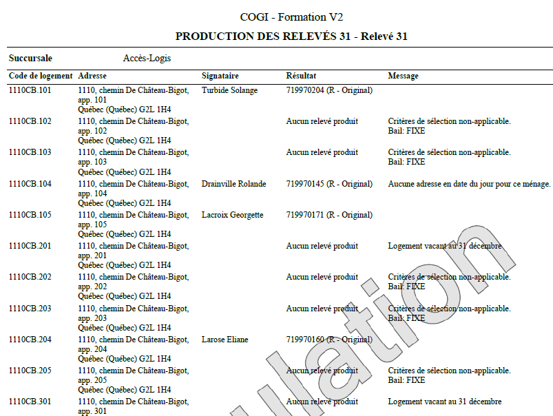 NOTE IMPORTANTE : Vous devez attendre la confirmation de Revenu Québec avant d'imprimer et expédier les relevés 31 aux locataires.