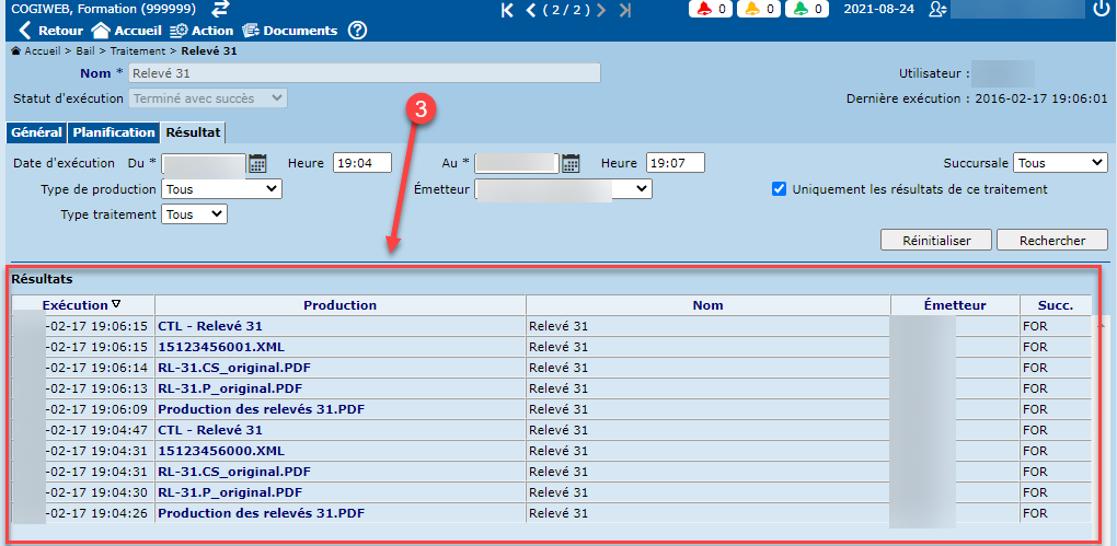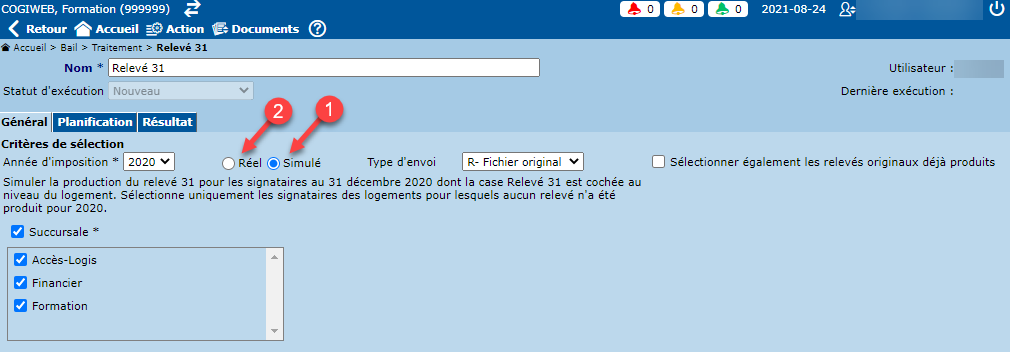 1.3 - Lancer le traitement permettant de produire les relevés 31