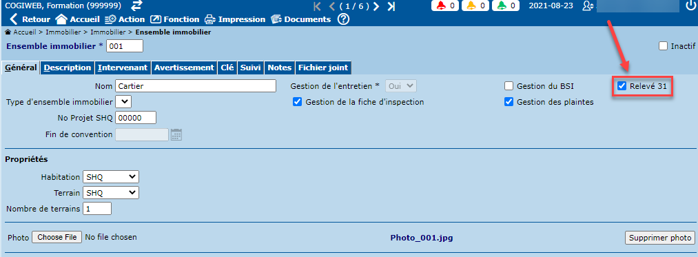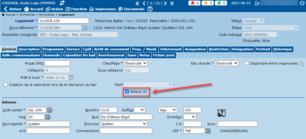 Le SIGLS permet d'indiquer les éléments pour lesquels le relevé 31 doit être produit. À cet effet, la case à cocher "Relevé 31" est disponible au niveau des écrans "Ensemble immobilier" et "Logement".