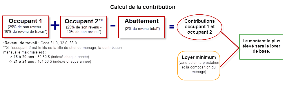 Le loyer mensuel de base représente la contribution de l'occupant 1 (chef de ménage) et de l'occupant 2 (personne indépendante ayant le revenu le plus élevé).