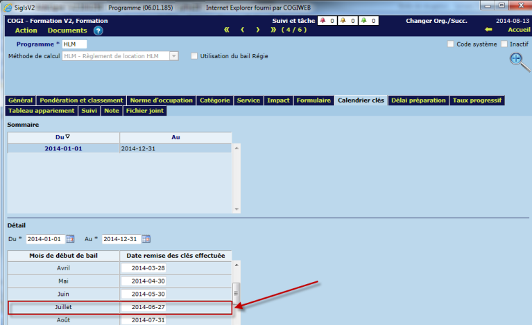 Récupérer la date de remise des clés effectuée selon le mois trouvé (juillet). La nouvelle date de prêt à louer sera donc 2014-06-27.