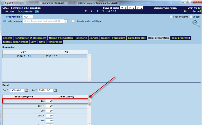 Par exemple, la date de résiliation est le 2013-06-30 avec un logement de 1cc, alors que la date de prêt à louer est 2013-06-30 + 30 jours (délai piloté), donc 2013-07-30.