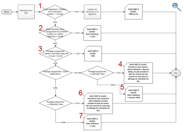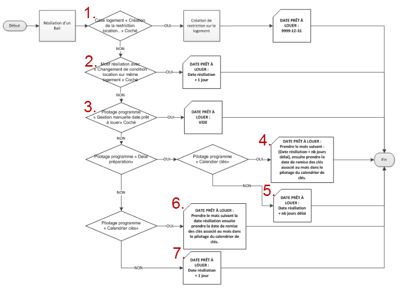 Le diagramme ci-dessous décrit le processus de calcul de la date de prêt à louer lors de la saisie d'une résiliation de bail :