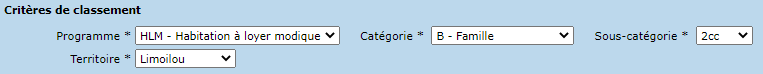 Le traitement "Classement des demandes" permet de classer des demandes correspondant à un programme, une catégorie, une sous-catégorie et un territoire en particulier.