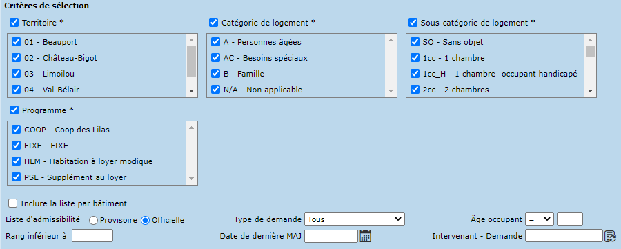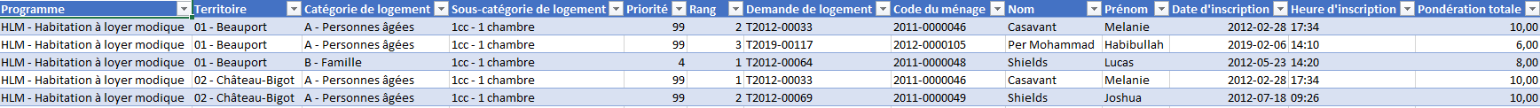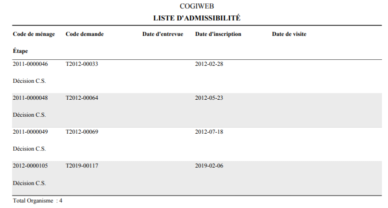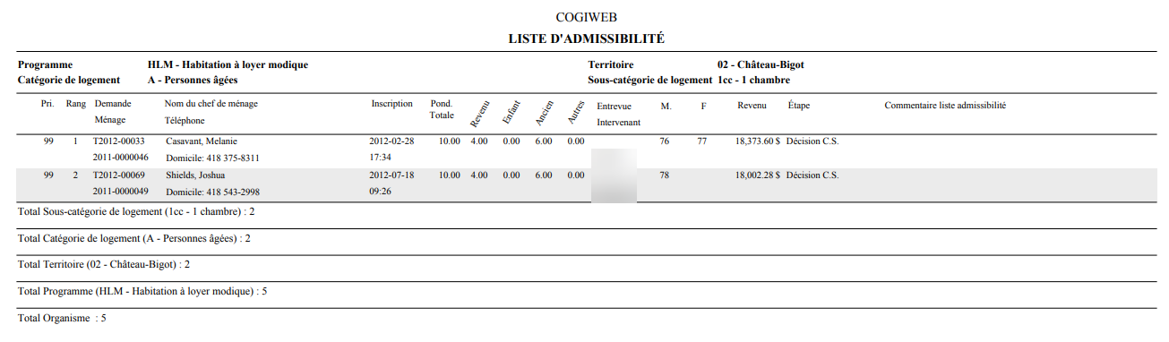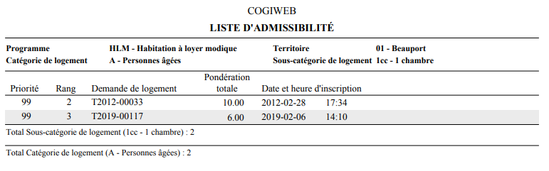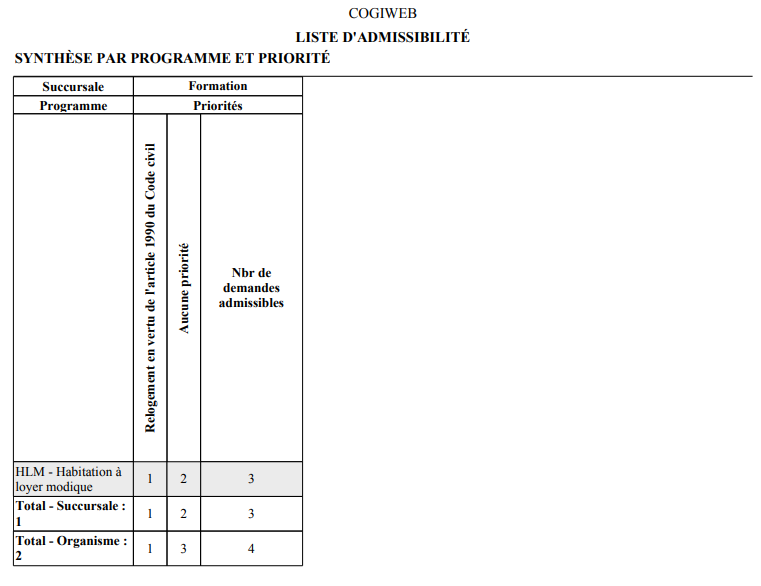 Cette liste permet de connaître le rang provisoire ou officiel des requérants, en fonction des critères suivants :