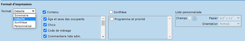 La liste d'admissibilité peut être imprimée en 4 formats :