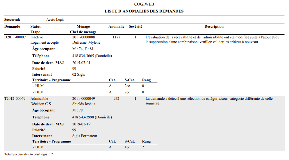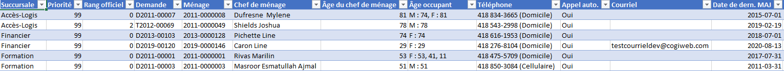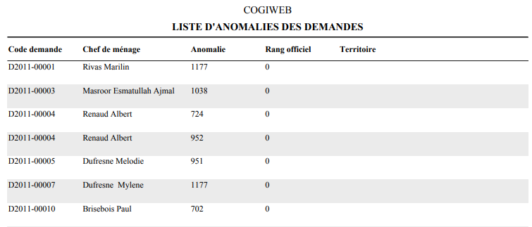 Cette liste peut s'avérer utile, par exemple, pour repérer rapidement les demandes pour lesquelles les revenus n'ont pas été saisis.