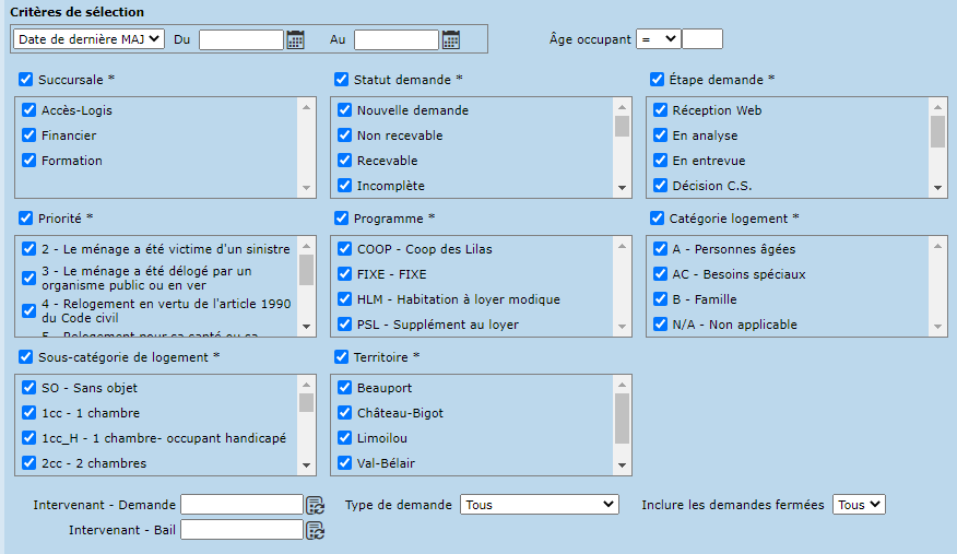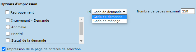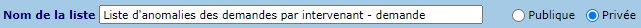 La liste d'anomalies des demandes permet de spécifier les critères suivants :