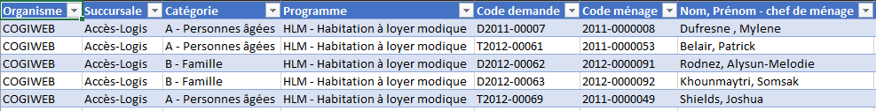 Après avoir défini les critères de sélection, le format et les options d'impression, il est possible d'exporter la liste en format Excel, pour manipulation externe. Pour ce faire, il suffit de cliquer sur le bouton "Exporter", et le système générera un fichier XLS.