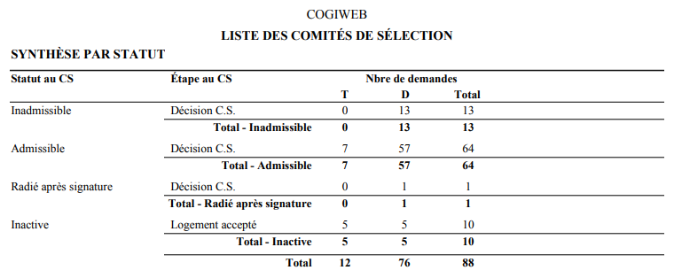 Le format synthèse présente un résumé des informations selon des critères précis. La liste des comités de sélection permet de choisir les synthèses suivantes :