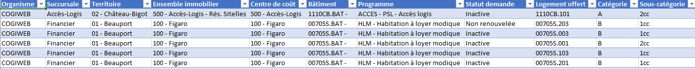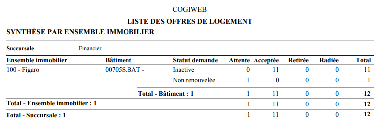 Les formats sommaire et détaillé permettent de regrouper les informations de la liste des offres de logement selon les critères suivants :