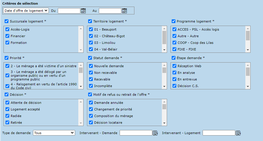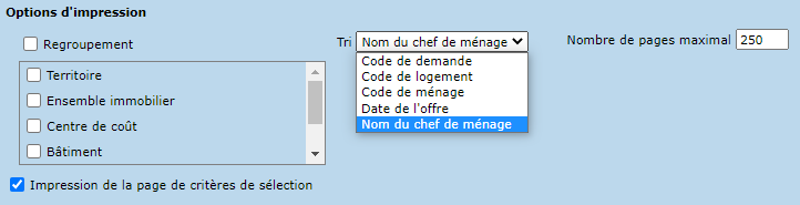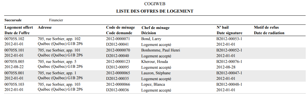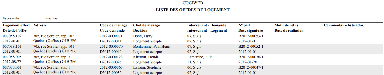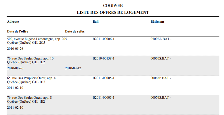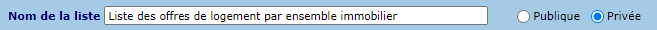 La liste des offres de logement permet d'imprimer ou exporter une liste d'offres de logement, selon différents critères de sélection. Par ailleurs, des listes personnalisées d'offres de logement peuvent être enregistrées.