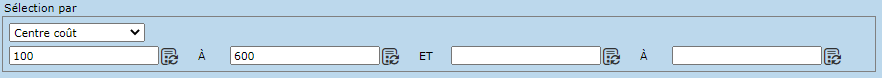 La section "Sélection par" permet de spécifier une ou plusieurs valeurs en particulier. Les catégories de valeurs disponibles sont :
