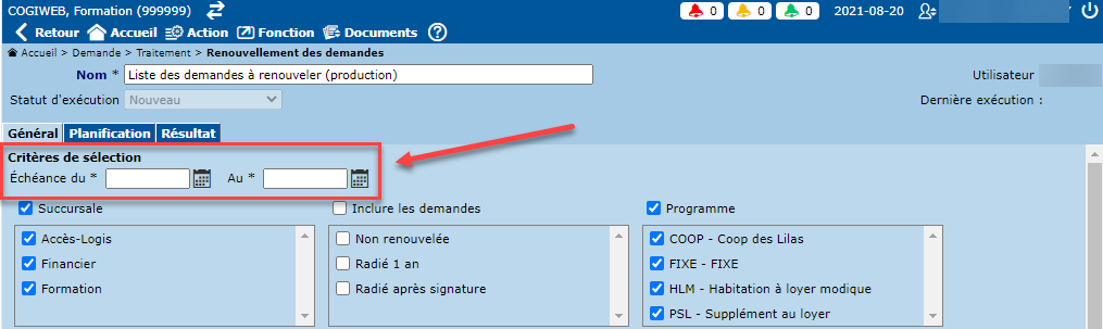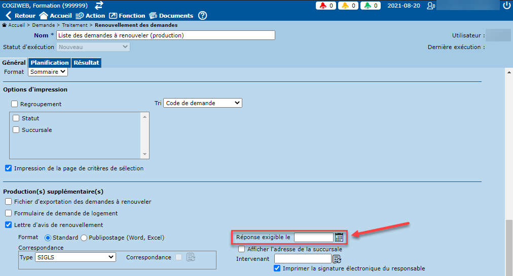 - Inscrire la date d'échéance des demandes et la date à laquelle vous souhaitez recevoir les réponses de renouvellement.