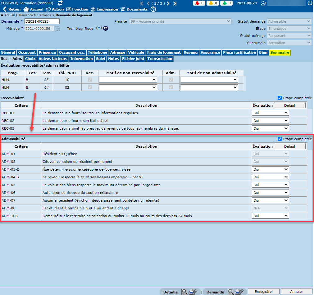 - Une fois la date d'échéance atteinte, la demande ne s'affiche plus dans la liste d'admissibilité.