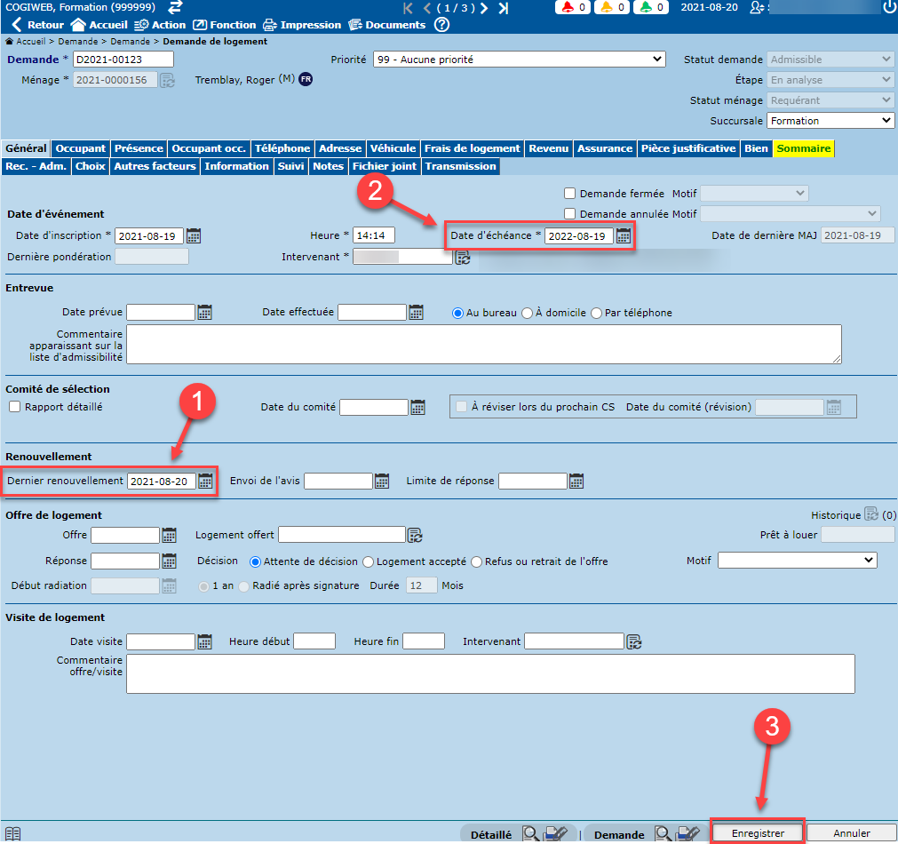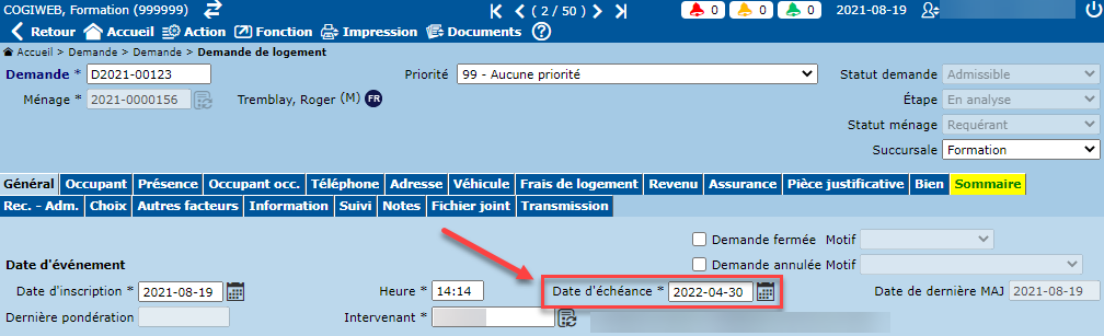 Les demandes de logement doivent être renouvelées à chaque année, et ce, avant la date inscrite dans le champ "Date d'échéance" de la demande.