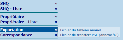 La section "Exportation" permet d'exporter le fichier du tableau annuel ainsi que le fichier de transfert PSL (aussi appelé "Annexe D").
