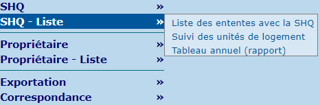 | Liste des ententes avec la SHQ | Permet de créer des listes d'ententes avec la SHQ, selon différents critères. |