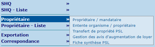 La section "Propriétaire" contient les écrans permettant de gérer les aspects touchant les ententes entre l'organisme et les propriétaires privés.