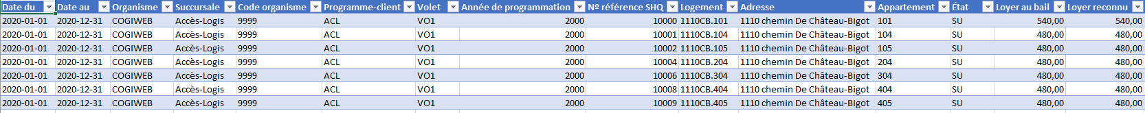 Par ailleurs, le tableau annuel contient les informations inscrites sur les annexes D transmises à la SHQ en début d'année, de même que les informations non-transmises telles que les amendements et les ajustements en cours de bail.