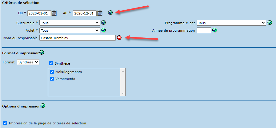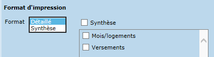 Le format synthèse fournit le nombre de mois/logements et/ou le total des versements pour la période sélectionnée.