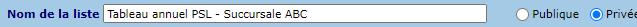 Après avoir défini les critères de sélection et le format d'impression, il est possible d'enregistrer le tableau annuel en tant que modèle public ou privé, pour consultation ultérieure.