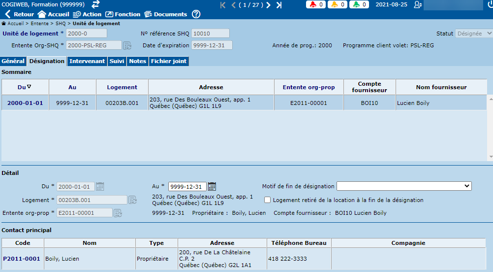 À noter que la désignation des unités de logement peut également s'effectuer au niveau de l'entente "Organisme / Propriétaire" et au niveau du logement.