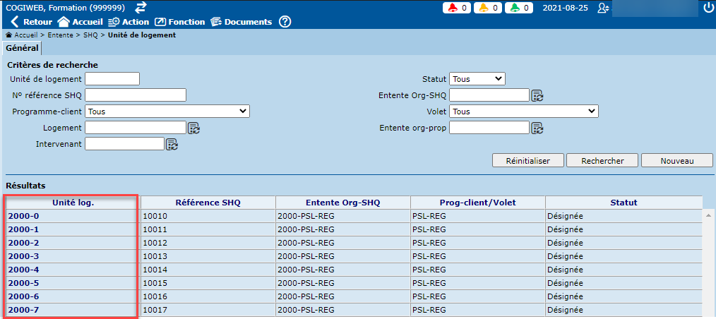 Les unités de logement sont créées automatiquement, avec des numéros internes, lors de la création de l'entente SHQ, selon le nombre d'unités maximum inscrit.