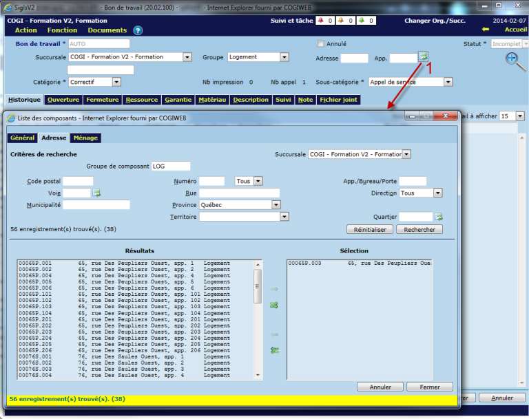 - La liste déroulante sera disponible seulement si le composant est un logement, et qu’il n’y a qu’un seul composant sur le bon de travail.