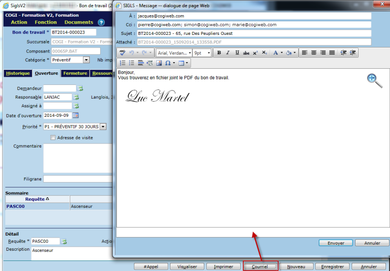 <Accueil » Entretien » Bon de travail » Envoi d'un bon de travail par courriel