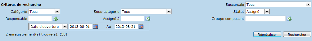 - Plage de dates (Du, Au) d'ouverture, terminé et de fermeture des bons de travail