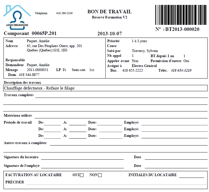 <Accueil » Entretien » Bon de travail » Impression d'un bon de travail